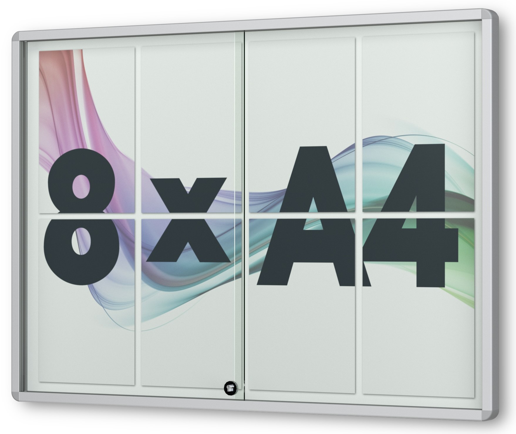| Größe: Flachschaukasten Nexus mit Schiebetüren: | 8 × DIN A4 • 925 × 665 mm B/H, 12 × DIN A4 • 925 × 975 mm B/H, 18 × DIN A4 • 1365 × 975 mm B/H |