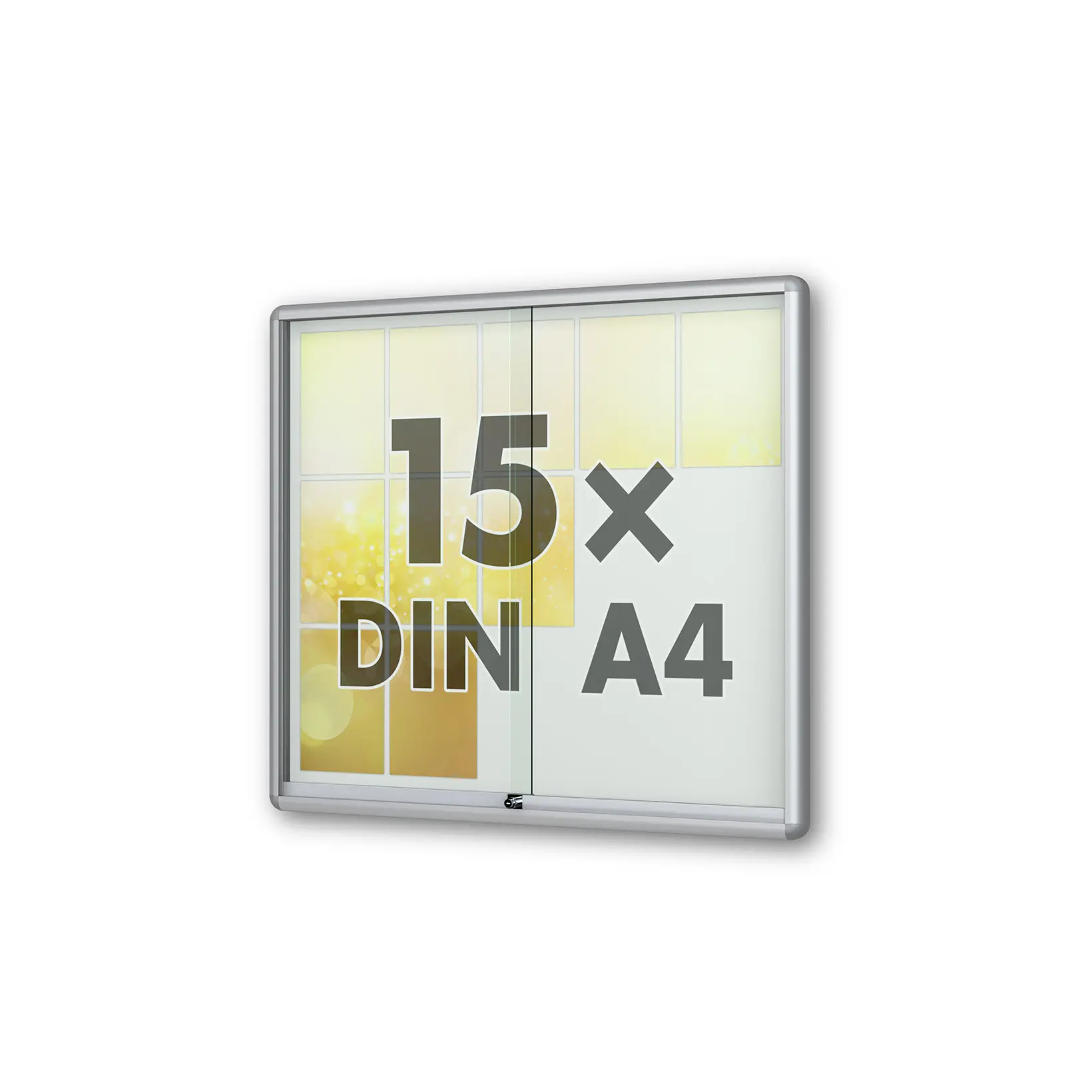 15 x DIN A4 Schaukasten Moveo - "die Schulvitrine" - 210 mm Bautiefe - mit Brandschutzklasse A1 - Rollengelagerte Schiebetüren✓ abschließbar✓ ESG-Sicherheitsglas✓