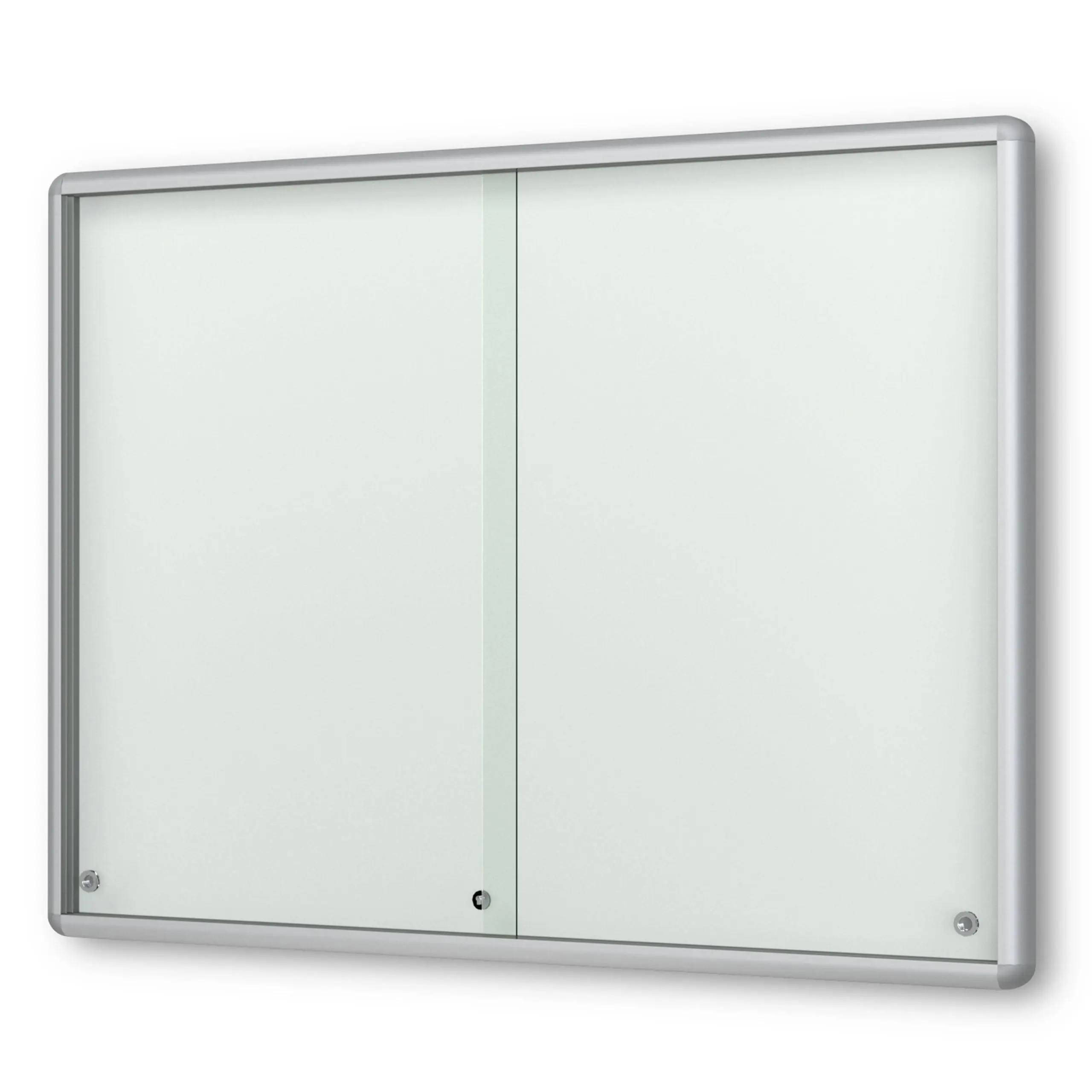 Merkmale Schaukasten: Brandschutz, Unfallschutz (gerundete Kanten), Wandmontage, abschliessbar, magnetisch, mit Schiebetüren